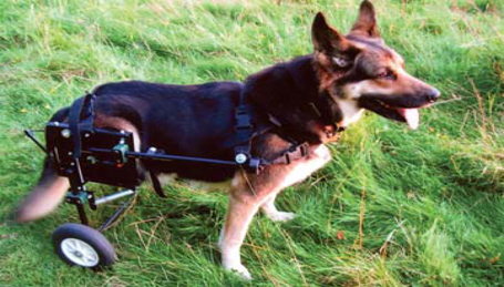The DogMobile has been designed for dogs suffering almost or complete hind leg paralysis.