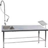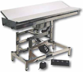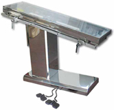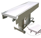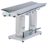 Χειρουργικό τραπέζι για μεγάλα ζώα, με δύο υδραυλικές αντλίες. Κατασκευασμένο εξ' ολοκλήρου από ανοξείδωτο χάλυβα. Σχεδιασμένο για να ανοίγει σε δύο πλάκες αλουμινίου. Με θήκη συλλογής υγρών από ανοξείδωτο χάλυβα και πεντάλ ανόδου-καθόδου.