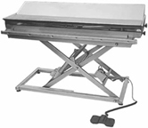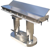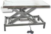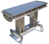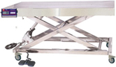 Από ανοξείδωτο χάλυβα 304, με πολλαπλή κίνηση ολίσθησης. Η μπαταρία επιτρέπει στον χειριστή να εργάζεται χωρίς ηλεκτρικό ρεύμα και να μεταφέρει το τραπέζι σε άλλο δωμάτιο σε περίπτωση έκτακτης ανάγκης. Εξοπλισμένο με τέσσερις κινητήριους τροχούς με φρένα. Μέγιστο φορτίο: 100 kg. Ισχύς 250W. Motor (24V.CC.) CE. 2-πεντάλ ελέγχου, με max 12 V.CC. Η ζυγαριά είναι ενσωματωμένη στο κάτω μέρος και ζυγίζει μέχρι 150kg, η ζύγιση πραγματοποιείται κατά μήκος της περιμέτρου, λειτουργεί με επαναφορτιζόμενες μπαταρίες και έχει ψηφιακή οθόνη.
