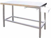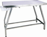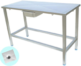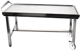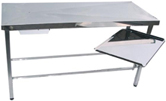Τραπέζι επίσκεψης κατασκευασμένο εξ' ολοκλήρου από 304 ανοξείδωτο χάλυβα, με δεξαμενή συλλογής διαρροής υγρού. Πτυσσόμενο και ρυθμιζόμενο καθ' ύψος.
